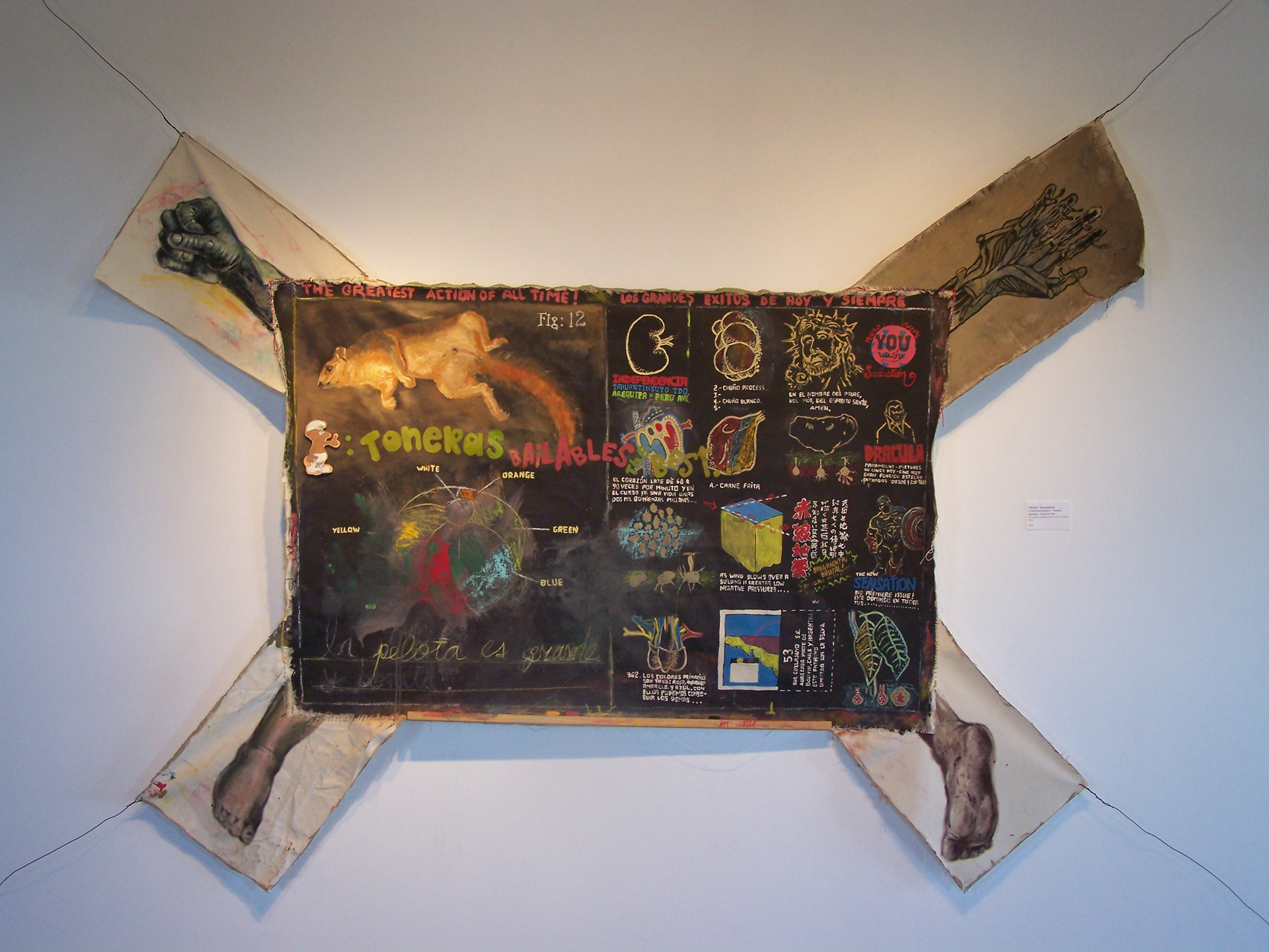 Contemporary Tupac Amaru Education - Oil paint, acrylic, pastels, and wood on canvas. 60 x 75 in. 2012 - 2013.